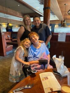 Renee Kessler, a resident of Westmoreland Manor in Greensburg, Pennsylvania, had her wish to have dinner with her family at Red Lobster granted, thanks to our Westmoreland County chapter. Kessler, 65, became paralyzed after two spinal cord surgeries in 2021 and has been a resident of Westmoreland Manor ever since. Prior to her surgeries, she had been an CRNP working with the VA since 2008, most recently working at the VA Clinic in Greensburg. Kessler also taught Anatomy & Physiology at Westmoreland Community College over the years. She is understandably depressed after such a drastic and sudden change to her life and having dinner out with her family will lift her spirits. Kessler, her two daughters, son-in-law and grandchildren enjoyed a dinner together at Red Lobster, thanks to the Westmoreland County chapter. Thank you to Red Lobster for donating appetizers for this special dinner.