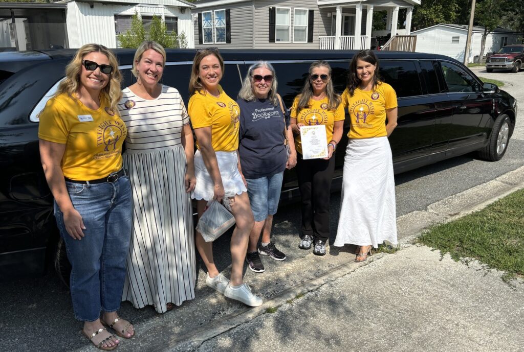 Barbara, 79, has always loved to read and worked as a librarian for many years so her local library was one of her favorite places to visit. Because she has no transportation, she hadn’t been able to go to the library in over four years and missed it very much. Her simple, yet heartfelt, wish was granted on Thursday, August 21, 2025. Our Jacksonville chapter arranged for Barbara to be picked up at her home in a limo and driven to Charles Webb Wesconnett Library where she was greeted by library staff with balloons and a gift basket for her. They also set aside several books for her by her favorite authors for her to check out. After her library visit, Barbara was treated to lunch at her favorite Mexican restaurant with chapter volunteers and library staff!