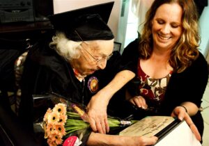 Theresia Brandl, 105, a resident of Oakdale, Pennsylvania, had her lifelong wish to finally receive her high school diploma granted, thanks to our Allegheny County chapter. Theresia has always regretted that she never graduated from high school. She attended Stowe Township High School, but left before she graduated in order to help take care of her family. Theresia received her diploma during a wonderful graduation celebration in her nursing facility complete with cap and gown on Wednesday, May 17th. Sadly, Theresia passed away one week after her wish was granted. According to her family, though, she passed away knowing that her final wish was granted.